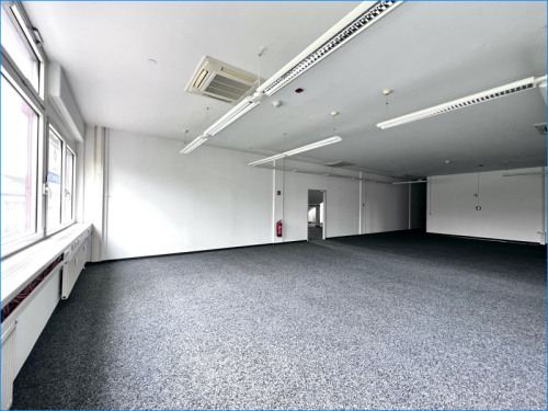 Die Fläche wurde ehemals als Bankfiliale genutzt und steht nun zur Anmietung als Büro oder Showroom frei. Die Fläche verteilt sich über zwei Etagen. Im Erdgeschoss stehen ca. 230 qm Büro- und im Unter...